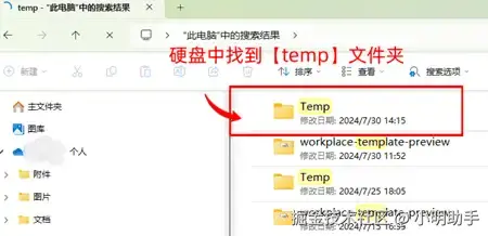 除了系统自动备份功能,还有一个地方可以尝试找到丢失文件的备份,即临时文件夹。如何还原回收站清空的文件,实现回收站恢复?在【此电脑】中找到【temp】文件夹,点进去就能搜索误删文件的备份了。