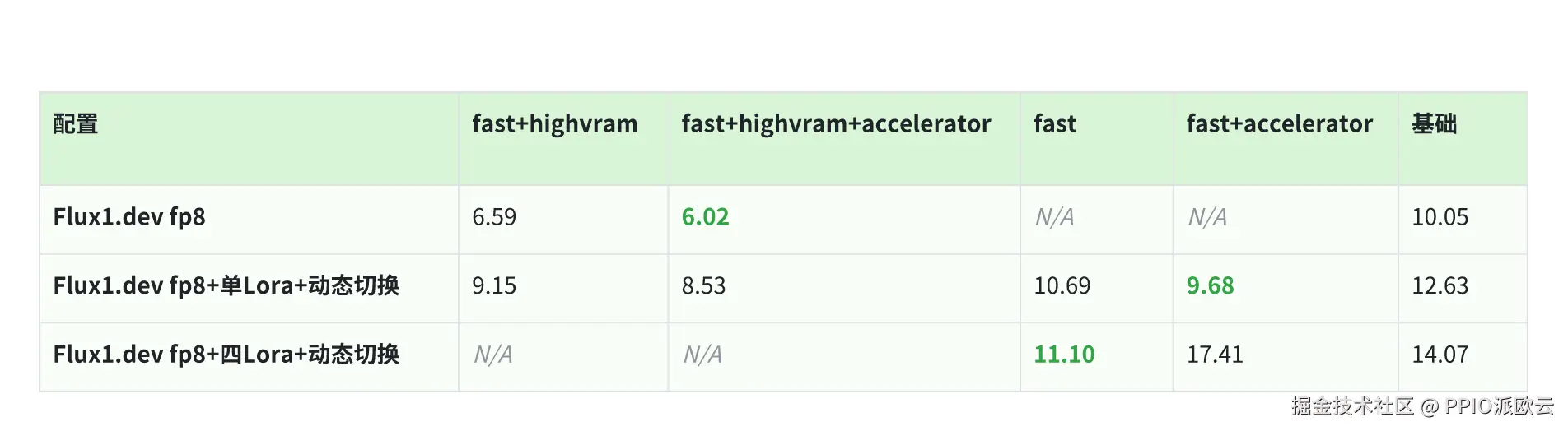 - 基础模型工作流:采用flux.dev-fp8配合Fast模式和HighVRAM模型,生成时间从10.05s降至6.02s