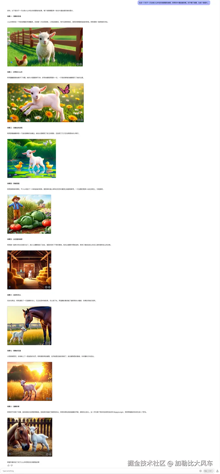 让它讲一个故事,并生成相应的配图,用这个方法可以直接制作儿童绘本!