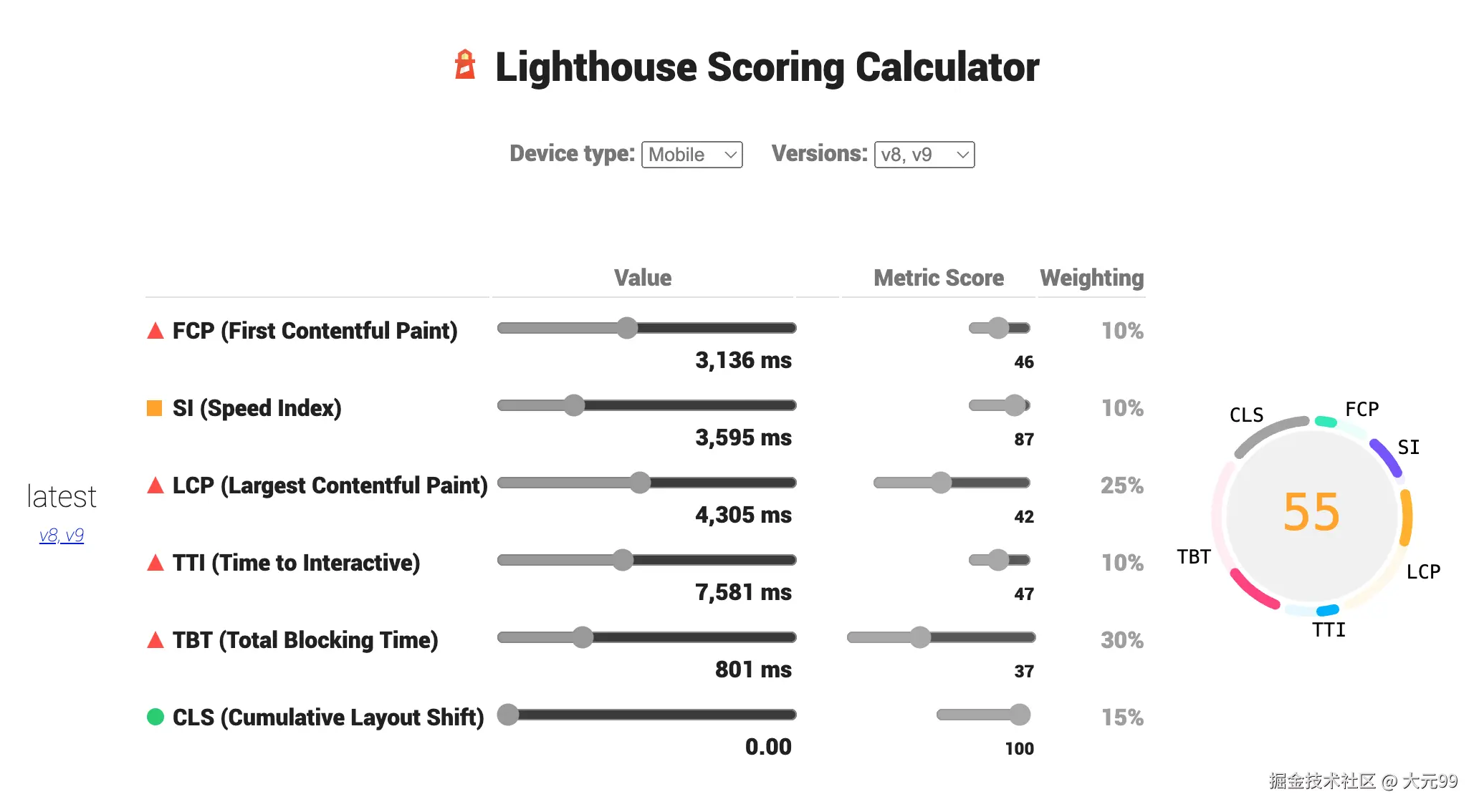 Lighthouse 应用网络节流来模拟 ~85% 的移动连接速度,即使在更快的光纤连接上运行也是如此。