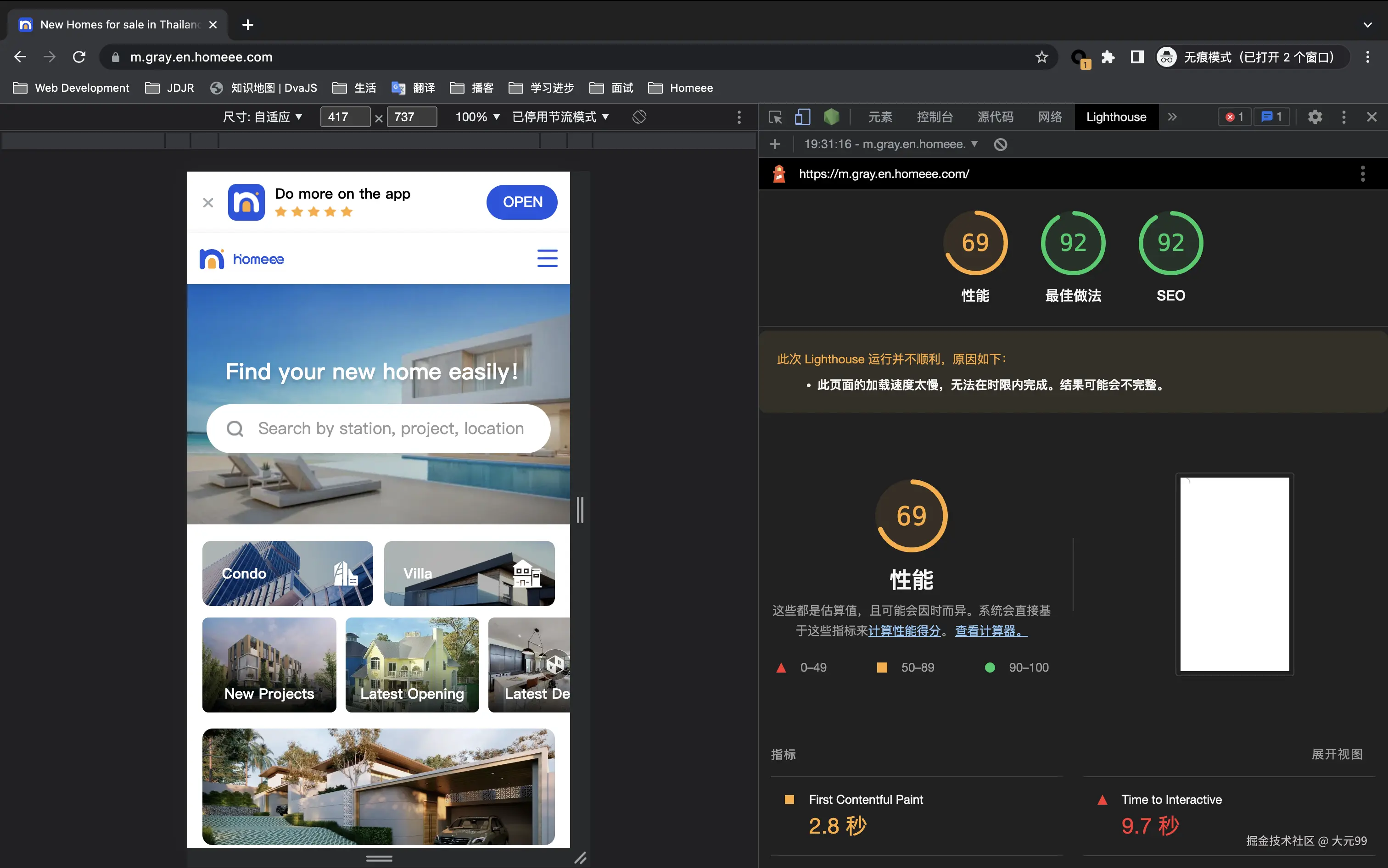 在使用Chrome浏览器中Lighthouse检测时,能取得较高分数。