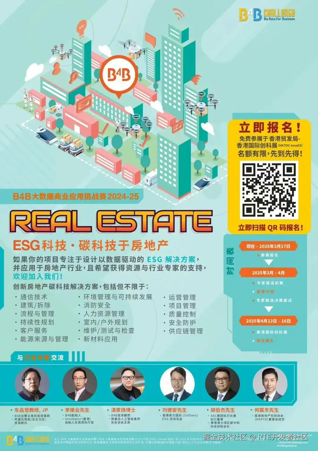 B4B 大数据商业应用挑战赛 2024-25 载誉归来!今年主题「碳科技于房地产 CarbonTech for Real Estate」和「从 AI 驱动的虚拟科技 Virtual Media Tech powered by AI」,我们期待通过这次命题,让科技在推动环境、社会和治理(ESG)倡议中的成为重要角色。参赛者将利用创新解决方案,探索技术如何应对气候变化和企业责任等全球性挑战。这一主题鼓励创造性思维和合作,激励团队开发不仅能推进商业目标,还能为社会和环境作出积极贡献的方案。