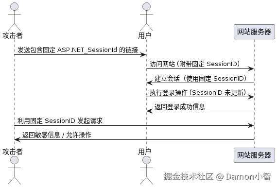 在 ASP.NET 环境中,默认情况下会话标识存储在名为 ASP.NET_SessionId 的 Cookie 中。如果在用户登录后,服务器仍然沿用登录前的 SessionID,攻击者可以通过诱导用户在已知 SessionID 的环境下进行登录,进而实现敏感信息泄露、账户劫持等安全风险。