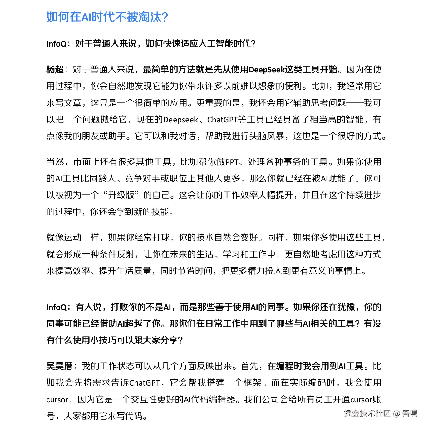 - 超级个体:普通人可通过AI工具(如Cursor、DeepSeek API)提升效率,甚至转型为“一人团队”。