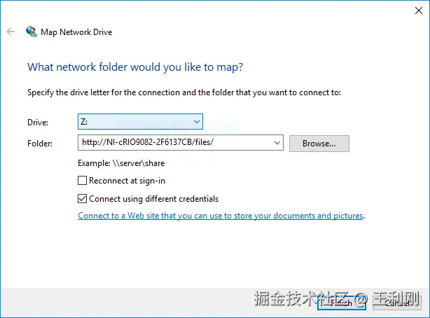 注意:如果使用基于Web的监视和配置工具连接到目标,则无法映射目标驱动器。在尝试映射Real-Time目标驱动器之前,请关闭基于Web的监视和配置窗口。