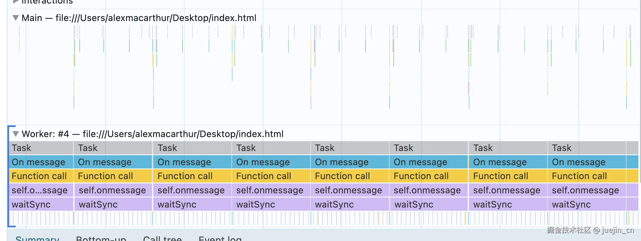 看主线程多么空闲,所有工作都转移到了下方的 Worker 区域,留下了充足的活动空间。