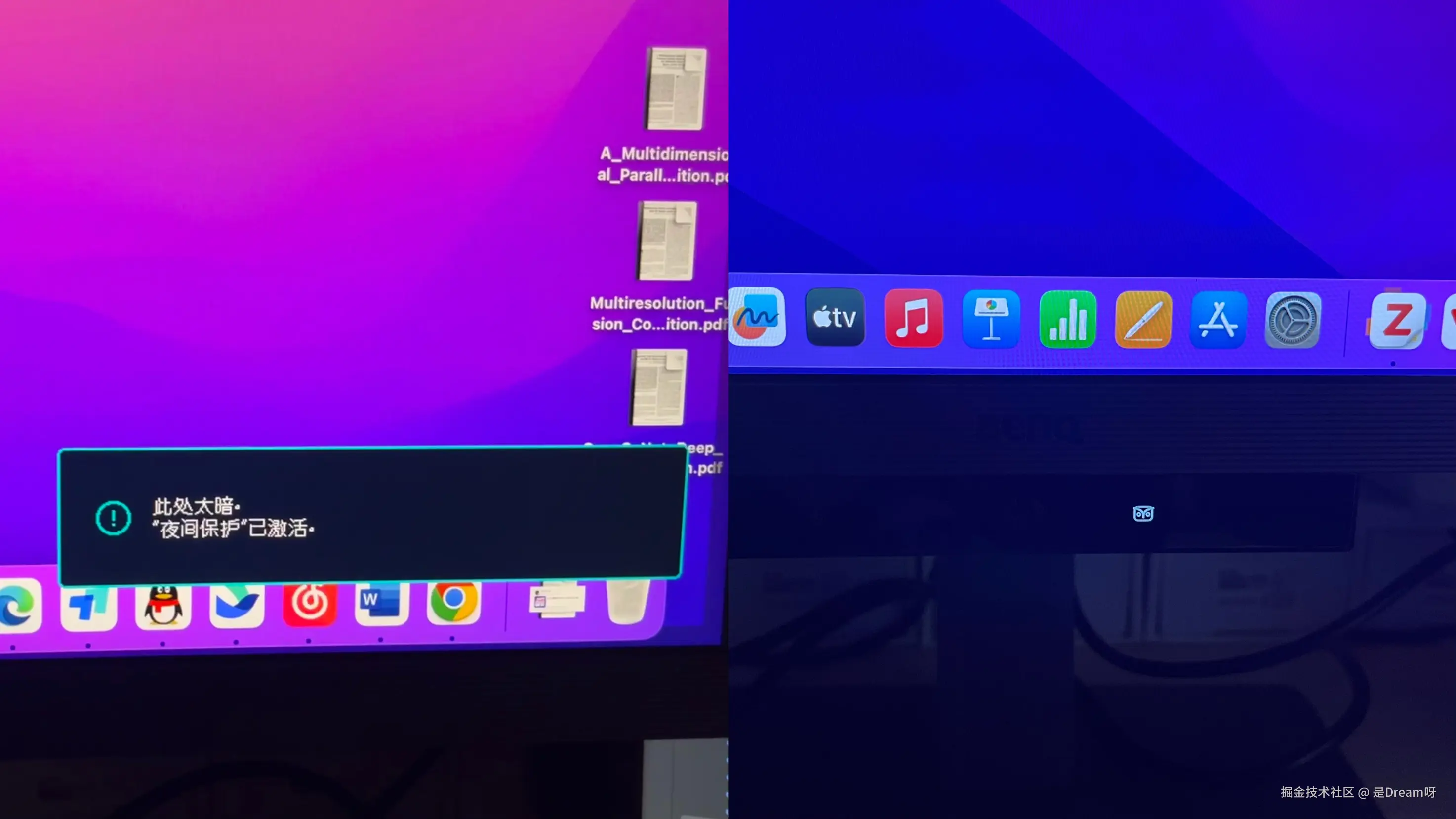 安装完毕,把我的Mac连接上,跟笔记本对比起来,28英寸4K画质着实看起来十分震撼,而配备的人体工学支架更是点睛之笔——支持旋转、130mm升降调节的多维角度调节系统,无论是站立办公的垂直视角还是坐姿观影的倾斜角度,都能通过滑轨式阻尼转轴实现单手精准定位,有效缓解了长期伏案导致的颈椎压力。