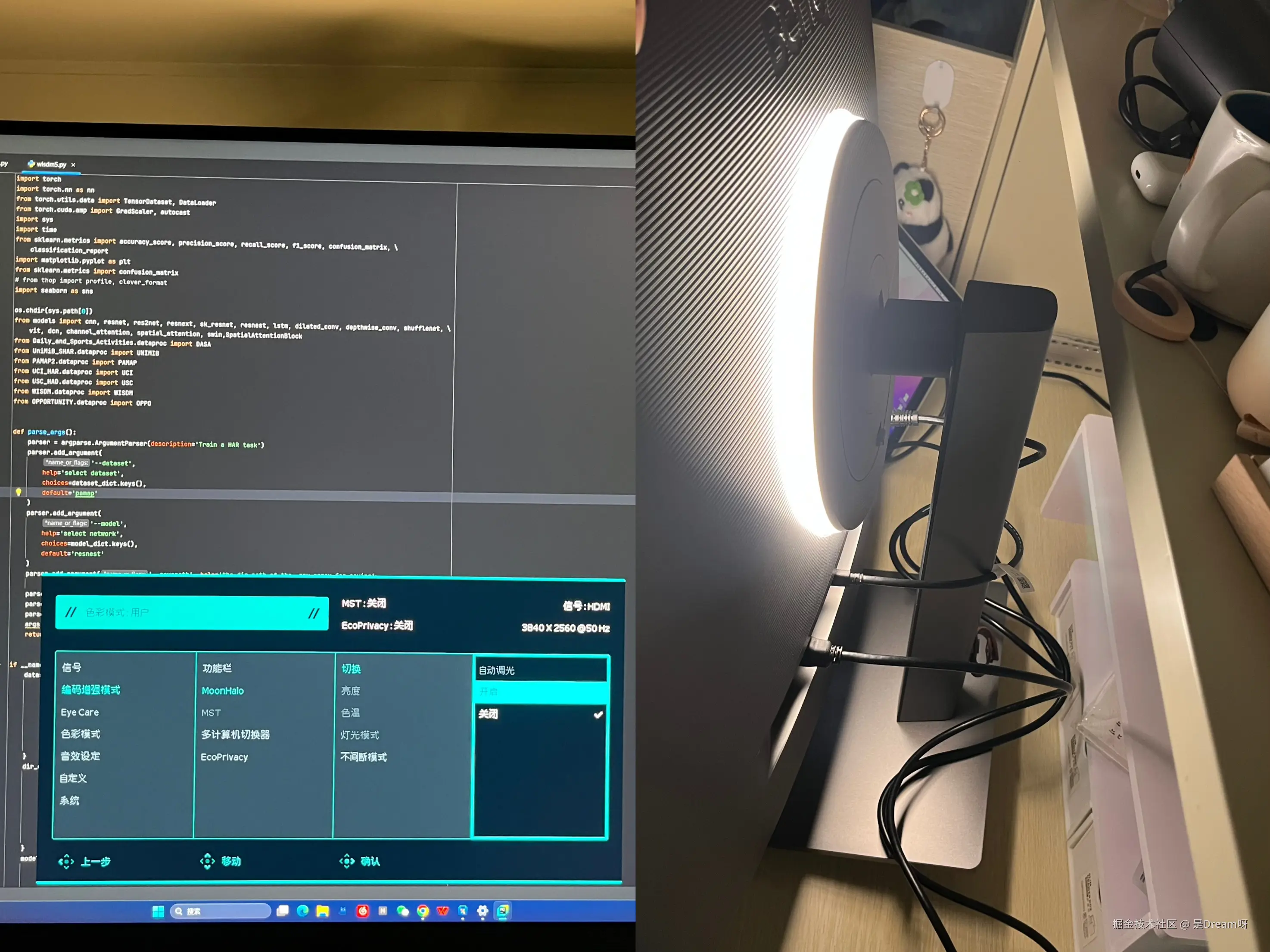 除此之外,明基RD280U显示器背部的MoonHalo智慧光环,具备极高的个性化调节功能,无论是色温、亮度,还是灯光模式,都能依照个人偏好进行设定。面对多样的工作环境,我们能够依据自身视觉舒适度灵活控制照明效果,从而实现显示效果与舒适度的完美平衡。我最爱的是晚上写代码时开个暖黄光,代码都变得温柔起来了。再配合人体工学支架根据自己舒适的姿势调节俯仰角,极大地提升了编程的愉悦感与效率,现在摸鱼的时候都舍不得关显示器,就爱看这圈光晕在墙上打出来的光影特效,谁用谁知道!
