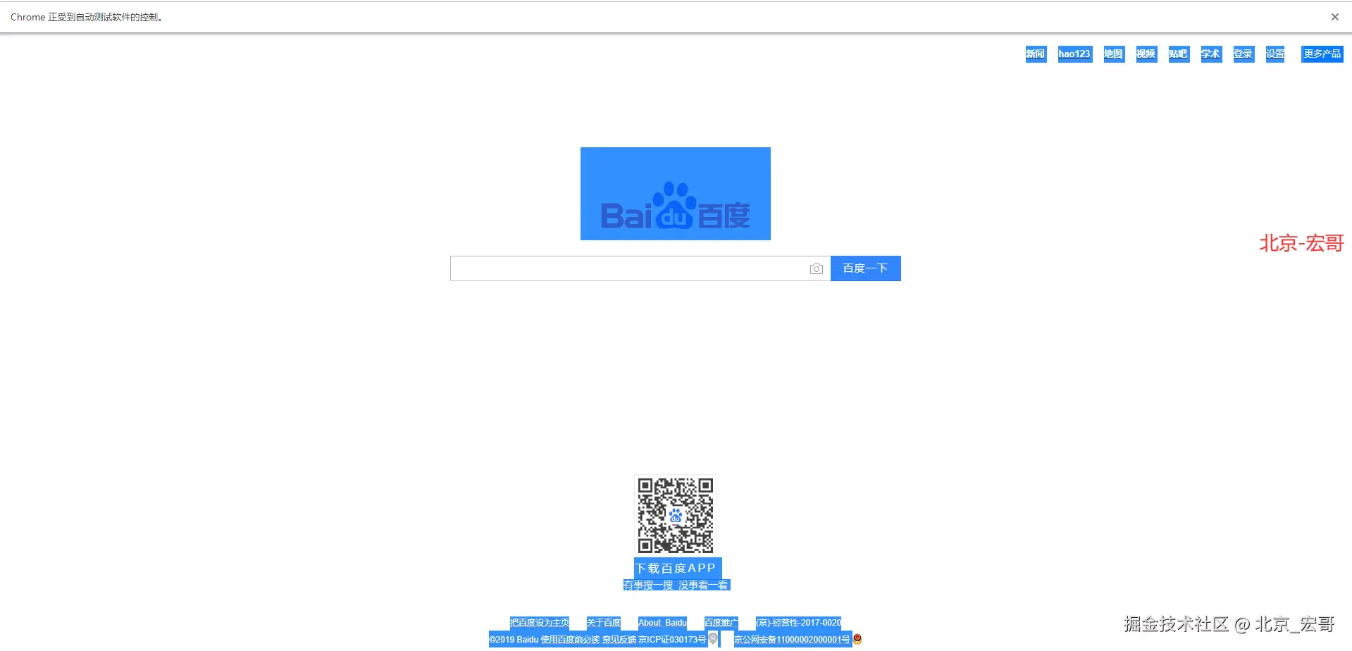 本文介绍全选当前页面文字,快捷键是 Ctrl+a,主要还是用send_keys()方法输入组合键,这里用百度首页举例。