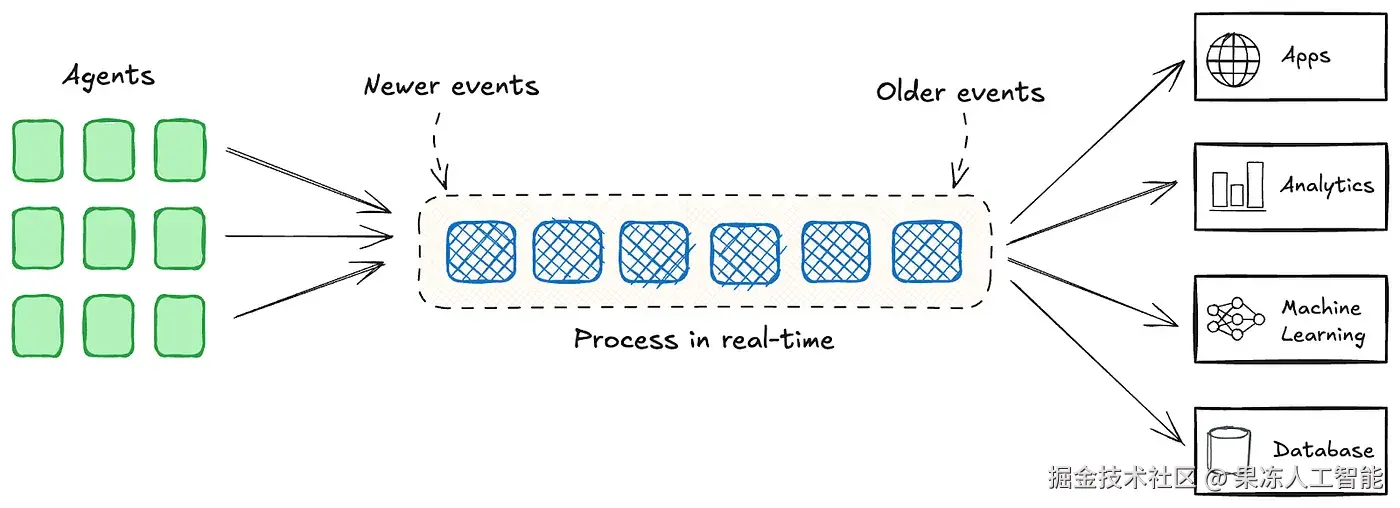 数据流处理让数据能够在整个业务中持续流动。一个“中央神经系统”可以作为实时数据流的统一支柱,连接不同的系统、应用和数据源,使代理能够高效通信和决策。