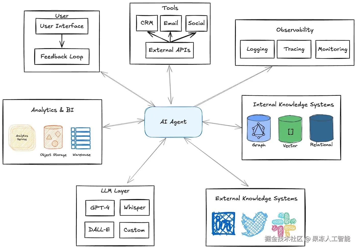 此外,代理的输出不仅仅是反馈回 AI 应用本身——它们还需要流向更广泛的关键系统,比如数据仓库、CRM、CDP(客户数据平台)和客户成功管理平台。