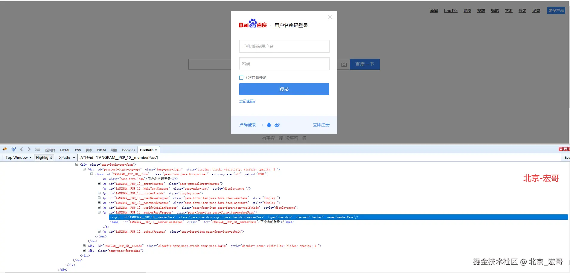 (3)点击下次自动登录点选按钮,xpath定位如下: