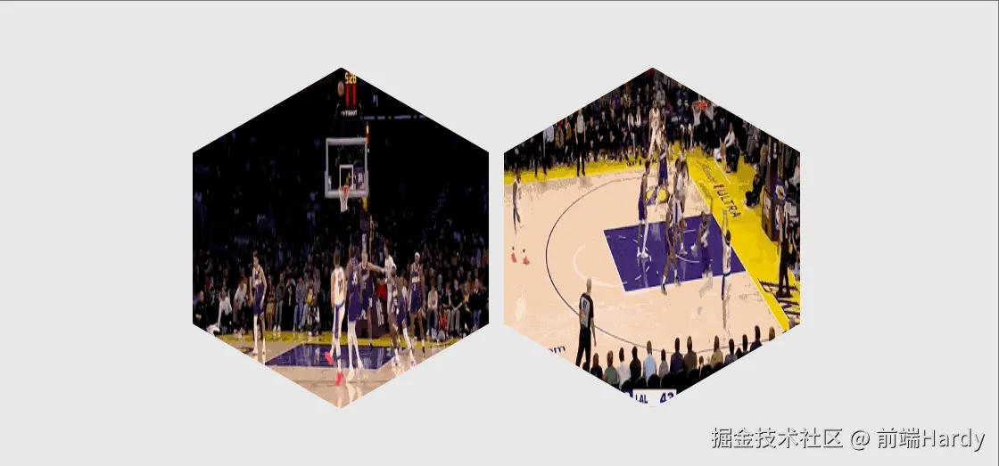 这些代码实现了一个动态的六边形网格布局,每个六边形卡片包含背景图片、标题和描述文本。