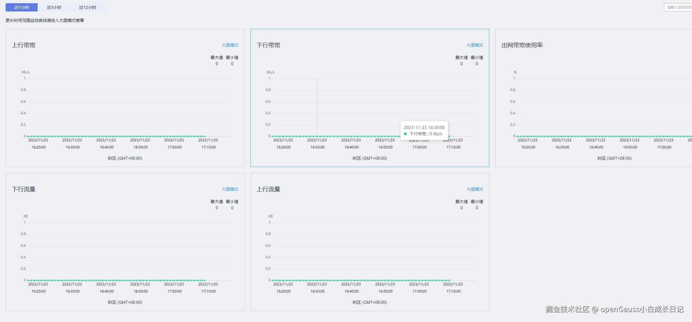 支持查看上行带宽、下行带宽、出网带宽使用率、下行流量和上行流量。