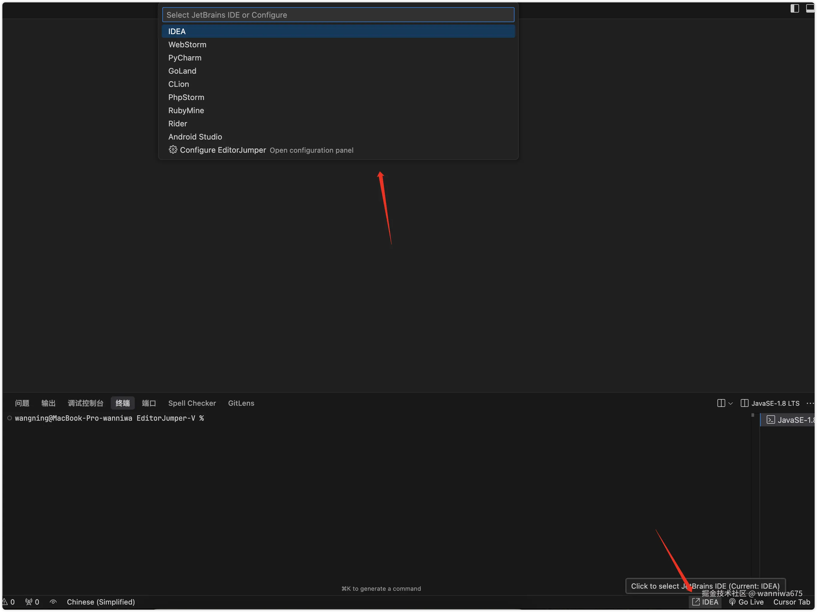 - 一键从 VS Code 类 IDE 跳转到 JetBrains IDE (支持 IDEA/WebStorm/PyCharm 等)