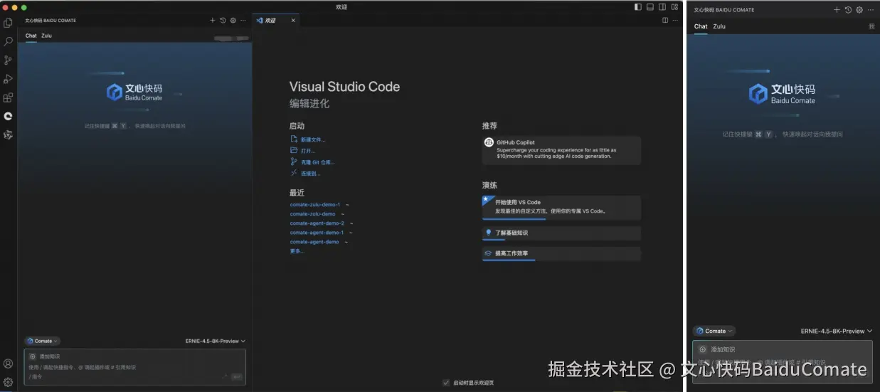 当天,文心快码Baidu Comate也发布了文心大模型4.5支持的新版本,为用户带来更加强大的智能交互体验。即日起,用户可以在文心快码Baidu Comate的【Chat】功能中,选择切换至ERNIE-4.5-8K-Preview,体验这一新一代原生多模态大模型的卓越性能。