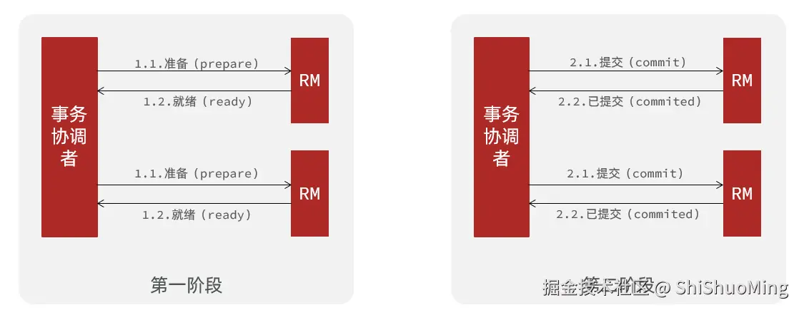 - 一阶段完成直接提交事务,释放数据库资源,性能好