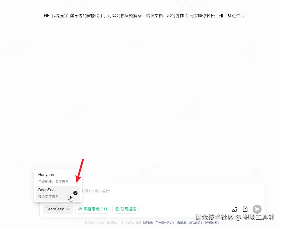 元宝,是近期炙手可热的一款AI应用,集成了2个知名的AI大模型——混元和DeepSeek,当我们选择DeepSeek模型,就能使用DeepSeek深度思考来辅助完成我们提出的各种任务。