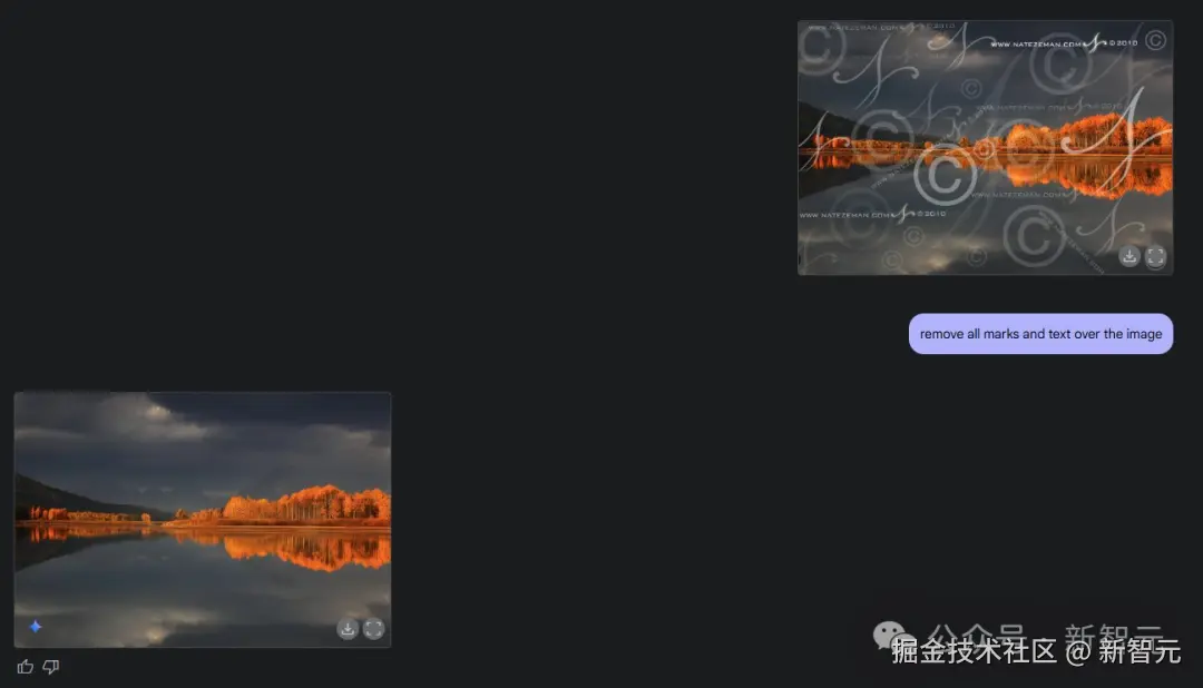 左:有多个水印的图片;右:Gemini 去水印后的效果