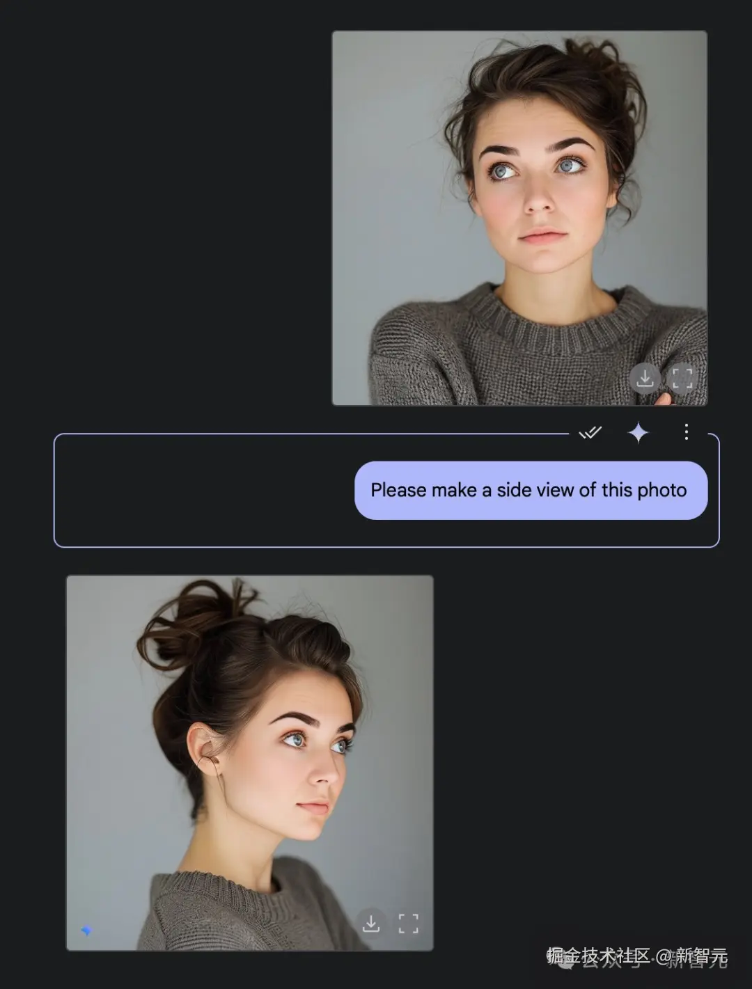 同理,一张正面肖像照,也可以切换至侧视图,或者缩小的视角。