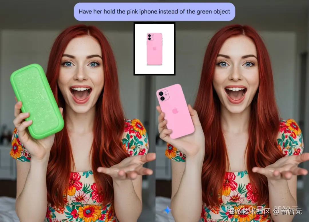 一句话,美女手中的手机就变成了我们指定的那款。