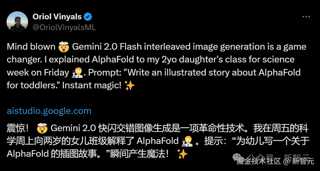 Oriol Vinyals 赞叹道:Gemini 2.0 Flash 交错图像生成是一项革命性技术!