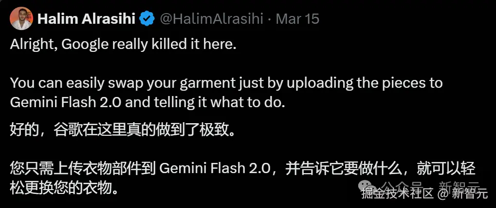 【新智元导读】谷歌的 Gemini 2.0 Flash 凭一句话 PS 的功能,还在全网不断掀起新的风暴!广告业直接被颠覆,模特从此彻底不存在了。去水印、梗图、交叉图像,已经被网友玩疯。甚至有人预言:谷歌已全面超越 OpenAI,将率先实现 AGI。