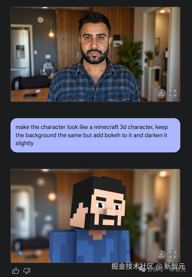 而且,Gemini 2.0 Flash 现在可以让我们输入任何人或物的图片,在此基础上创作出全新的形象,同时还能较好地保持原始人物 / 角色的特征。