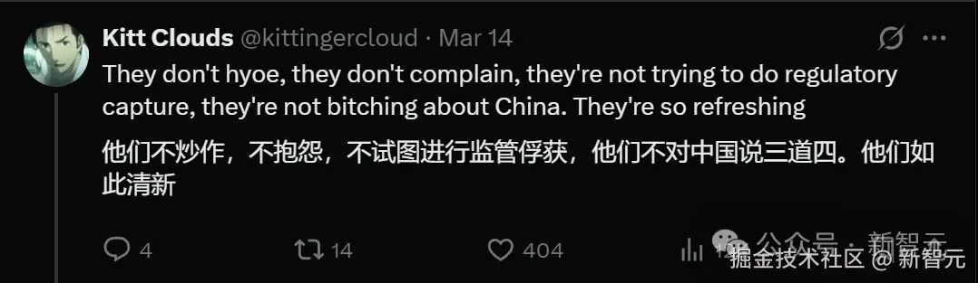 对比之下,OpenAI 近期最令人印象深刻的行动,大概就是发出 15 页提案,呼吁美国政府全面封禁 DeepSeek、锁死中国 AI 了,这么一对比,简直高下立判。