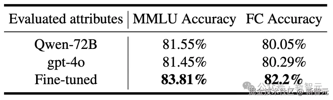 为了提升智能体的核心能力,可以针对性进行调优工作,如下表所示,在 Function Call 准召率上,通过增加通用基础能力数据,并合成 DPO 训练数据,在函数名匹配加全参数匹配评测的 Function Call 评测方法上,验证了 Function Call 核心能力提升的同时其他能力保持稳步提升,同时通过在 MMLU(大规模多任务语言理解)评测集上看到通用能力不损失。