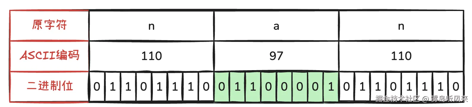 首先将字符对应的二进制位表示出来