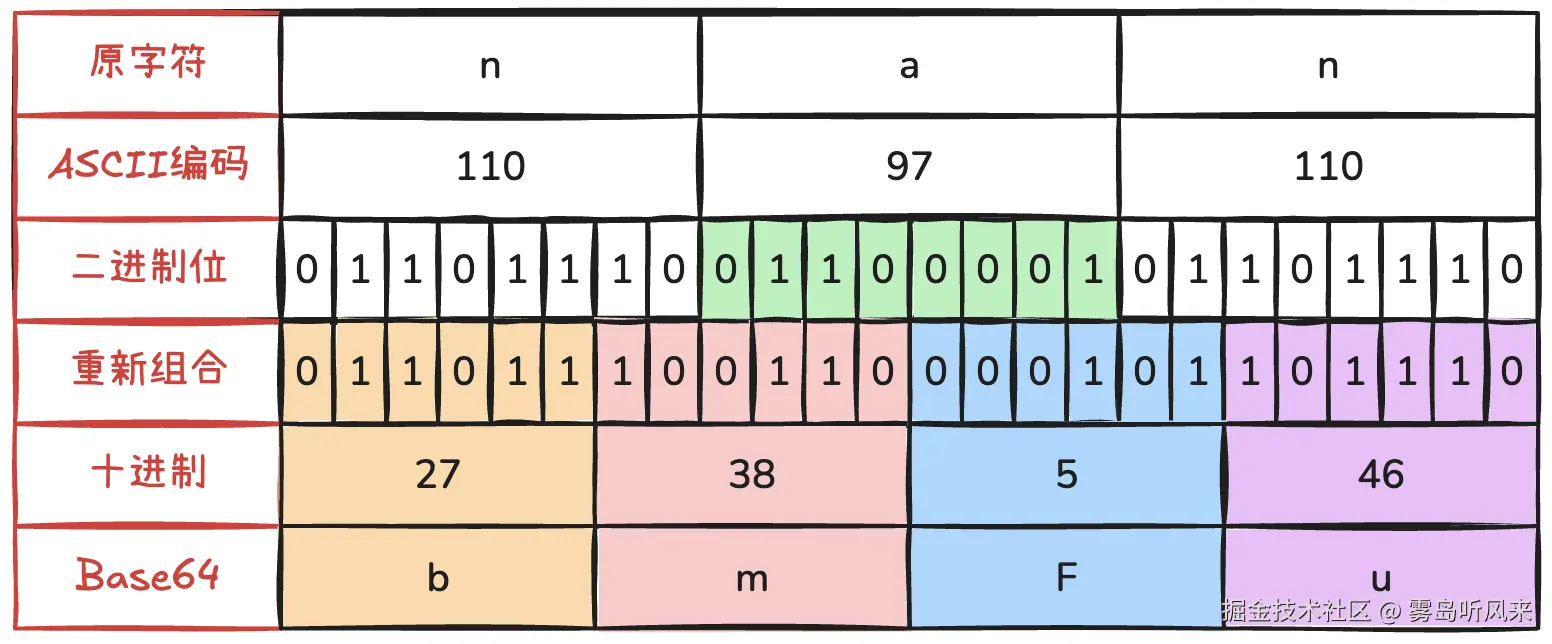 刚好nan是3个字节,它们的二进制位正好组成了一个24位的二进制块