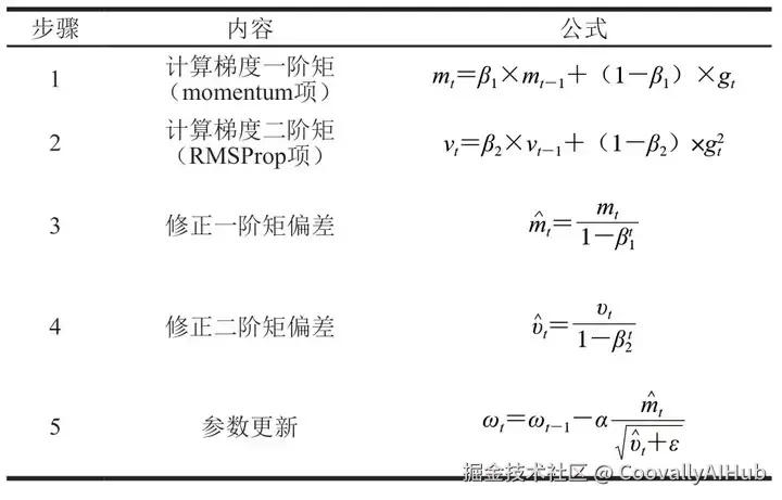 表5 Adam算法参数更新步骤