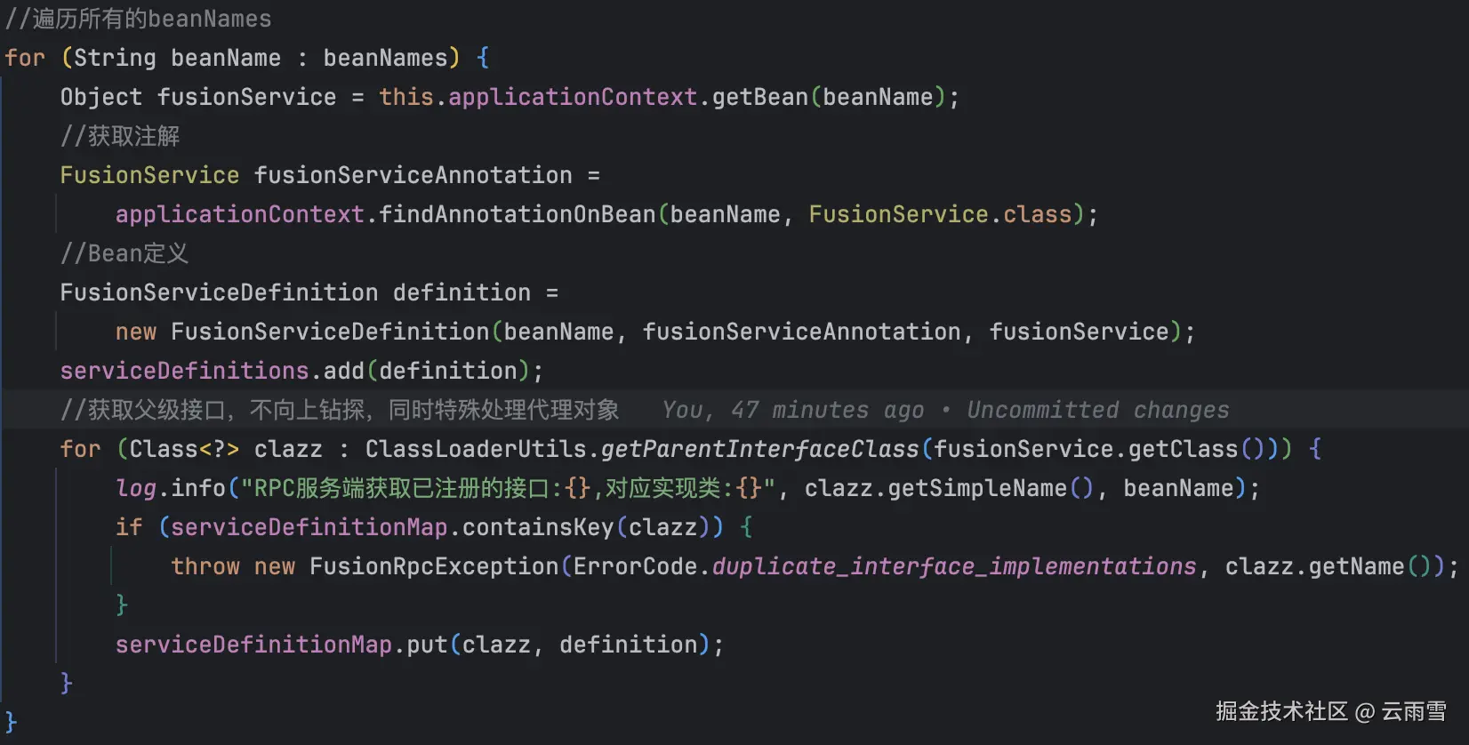 - FusionService注解内含@Component,交给spring管理,因此从beanfactory中获取类上存在注解FusionService的bean就行