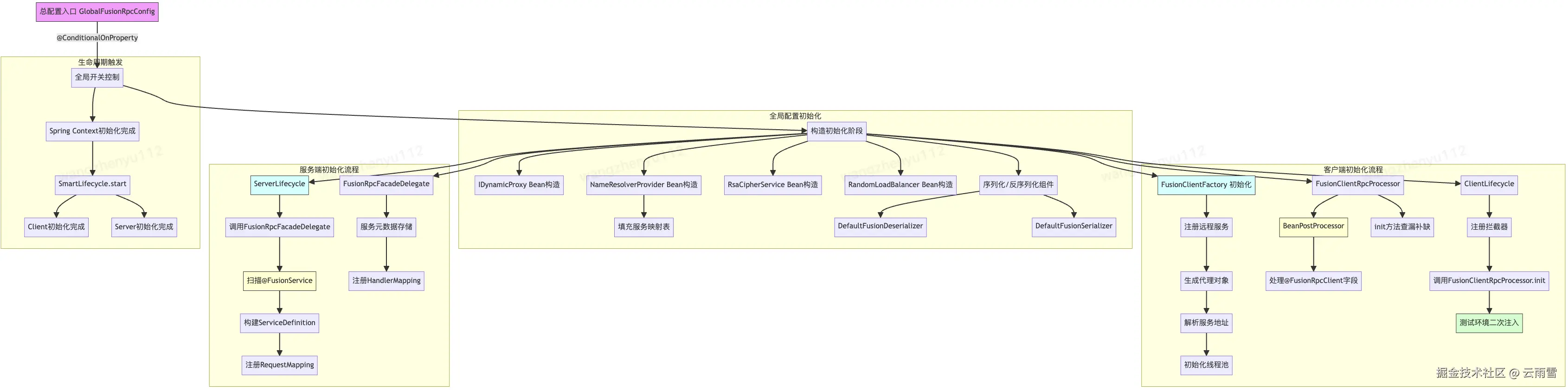 - ServerLifecycle、ClientLifecycle、FusionRpcFacadeDelegate、FusionClientFactory、NameResolverProvider、FusionClientRpcProcessor、IDynamicProxy、DefaultFusionDeserializer、DefaultFusionSerializer、RandomLoadBalancer、RsaCipherService