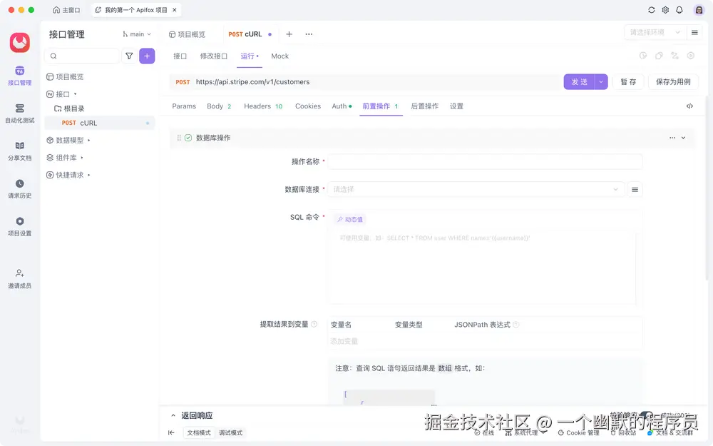 前置操作、后置操作支持添加数据库操作,可以读写数据库数据,查询结果还能在接口请求参数、断言、自定义脚本等场景中使用。目前支持MySQL、SQL Server、Oracle、PostgreSQL,未来还会支持更多数据库类型。这功能简直太强了!