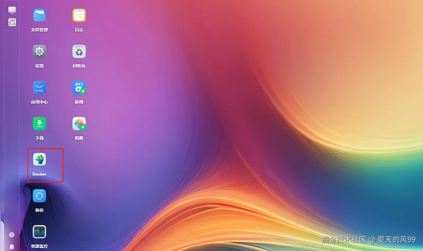 登录成功后,在飞牛私有云fnOS的界面中,打开 "Docker",添加 ZeroNews 容器