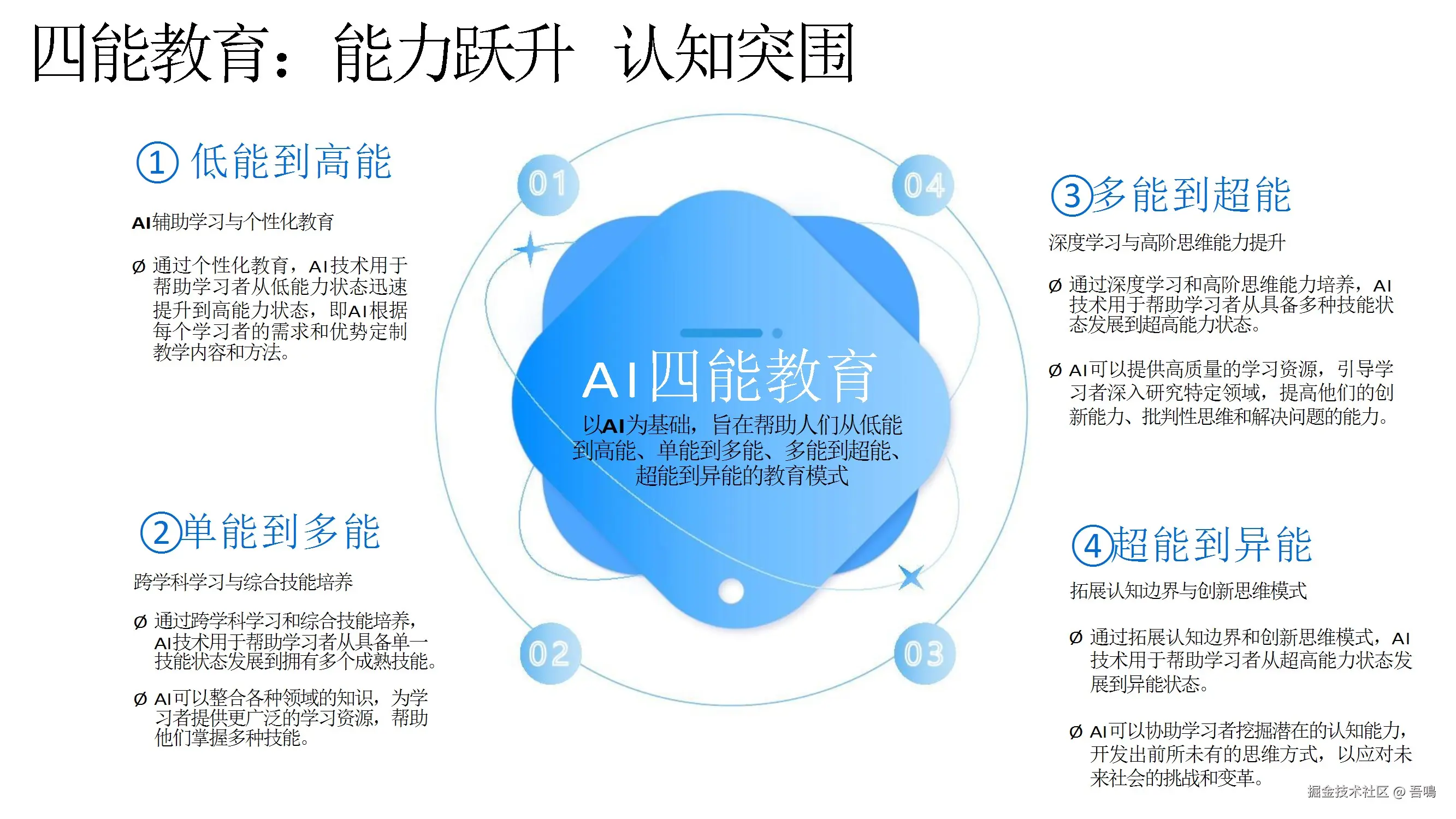 介绍了AIGC在教育领域的多种应用,包括AI辅助学习、个性化教育、跨学科学习等,强调了AIGC在提升学生能力、拓展认知边界方面的潜力。同时,展示了AI在教育论文写作、文学创作等方面的实际应用案例。