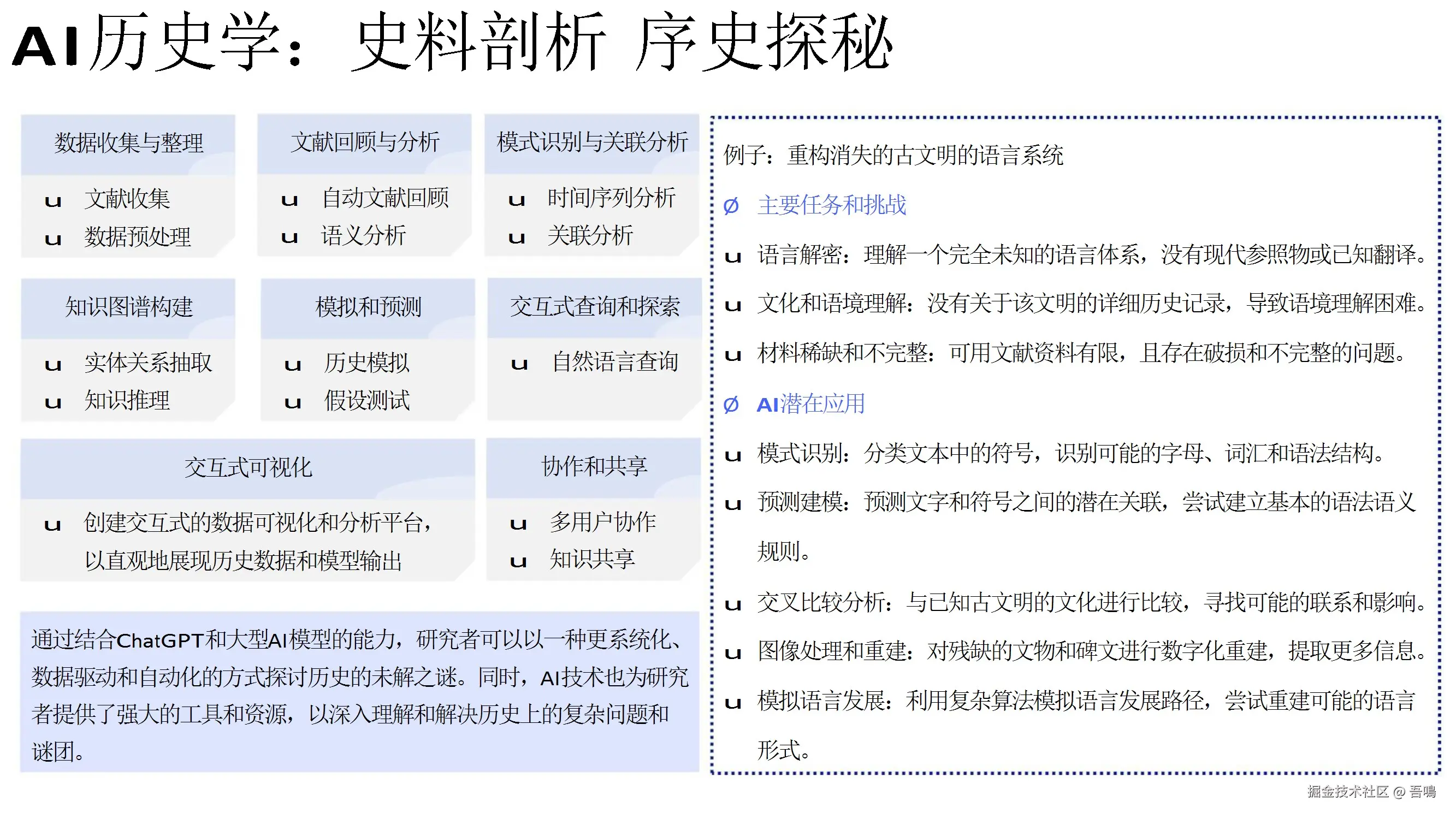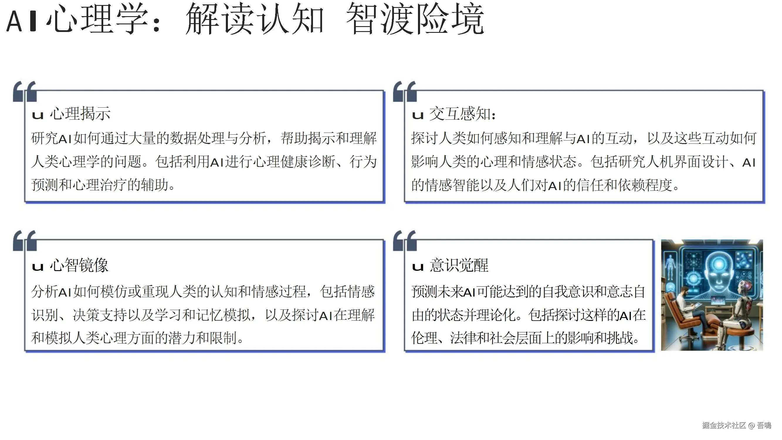 探讨了AIGC在心理学、历史学、美学、生物医药、人形机器人等领域的探索和应用,展示了AIGC技术的广泛性和深入性。同时,介绍了清华AI多学科诊疗系统(AI-MDT)和人形机器人在医疗、教育等方面的应用实例。