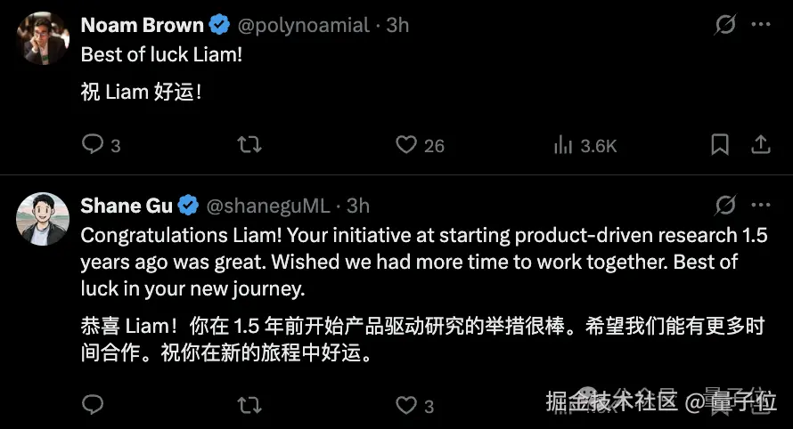 对于 Fedus 的新征程,不少 OpenAI 和 Google 前同事都送上了祝福: