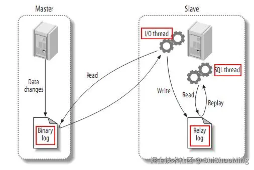- MySQL slave 将 master 的 binary log 拷贝到它的中继日志(relay log)