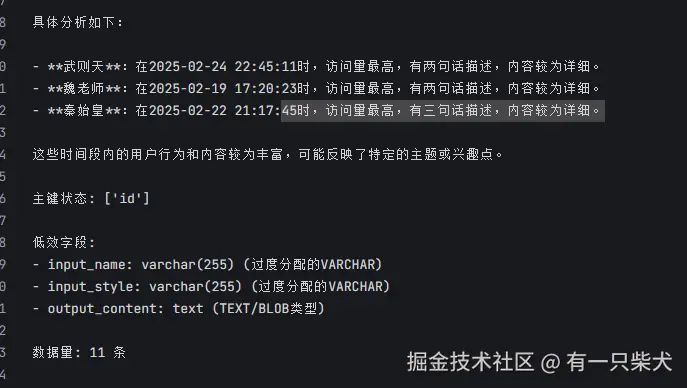 上面是简单的DeepSeek进行数据分析的功能,对于数据量小的来说可能还行,但是对于数据量大的来说还是够呛。但是我们可以用他来进行一些数据结构的完整性检查、有效性检查以及给出一些合理的建议。