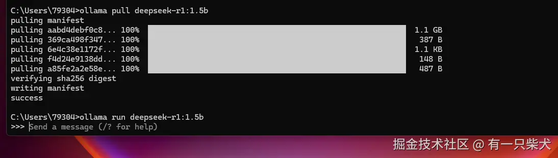 接着输入以下命令,进行拉取模型: