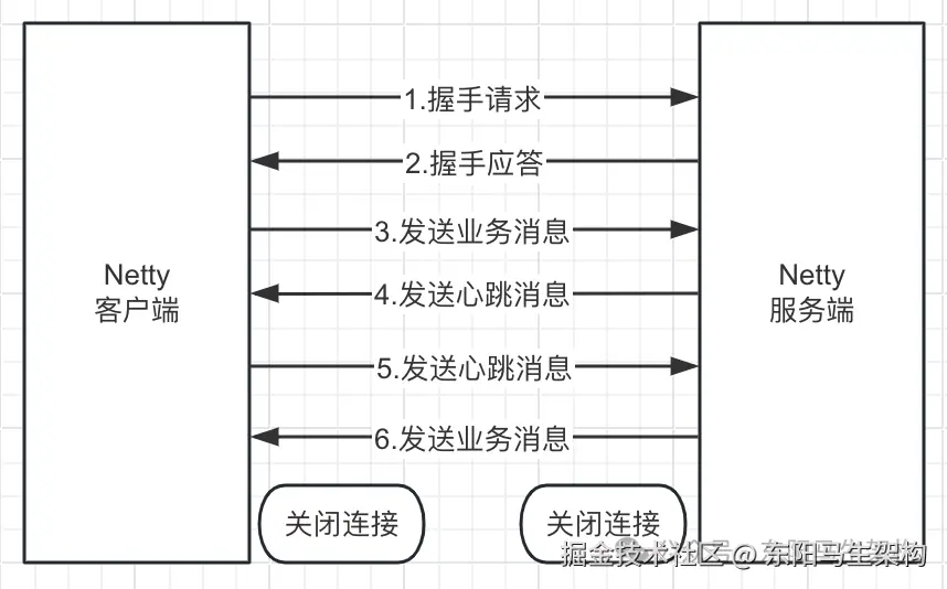 由于客户端和服务端采用长连接进行通信,而且在正常的业务运行期间,双方通过心跳和业务消息来维持链路,所以任何一方都不需要主动关闭连接。