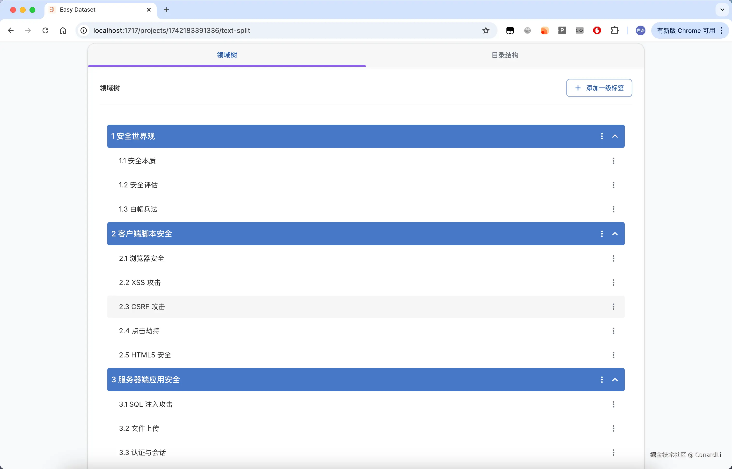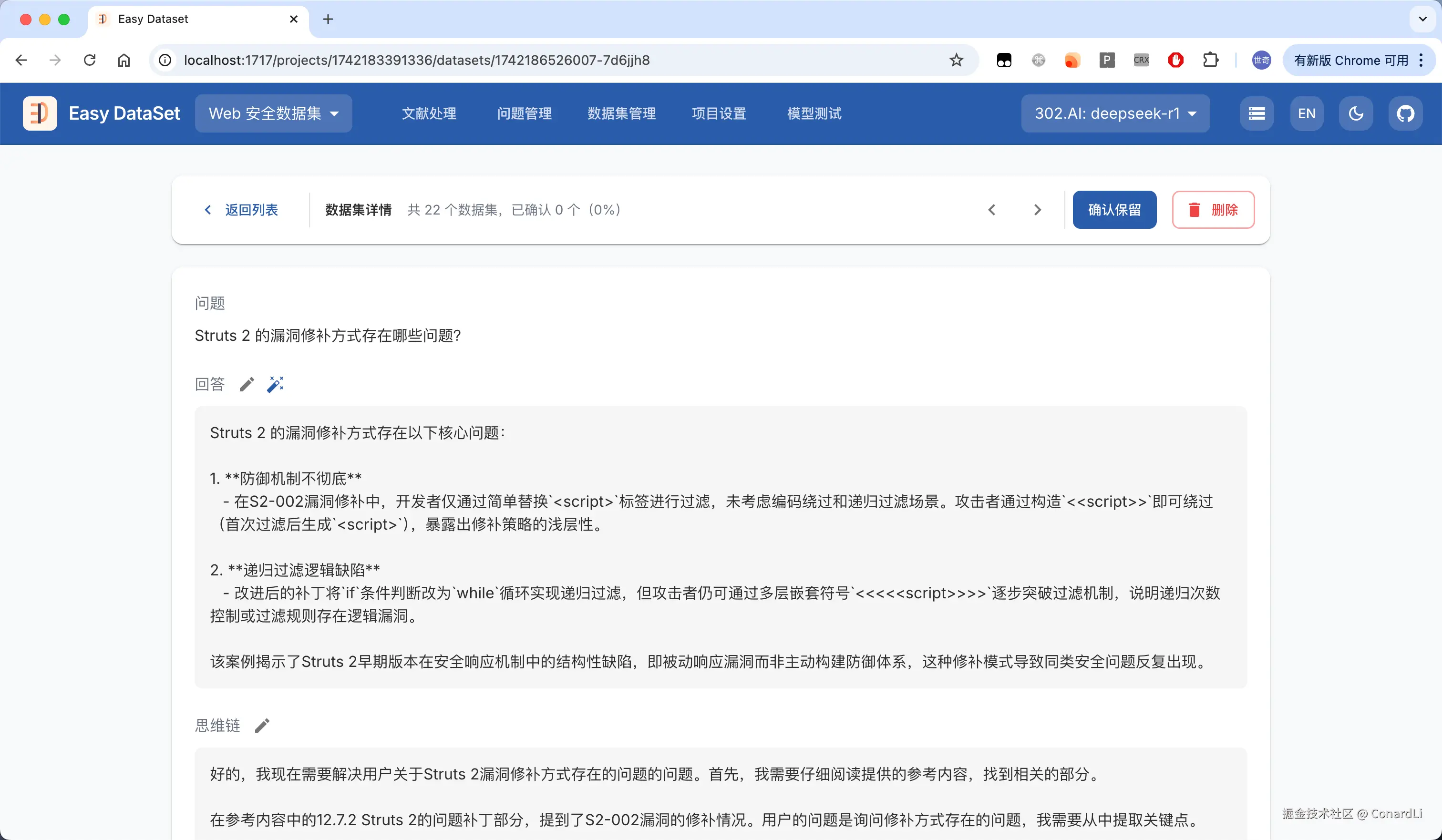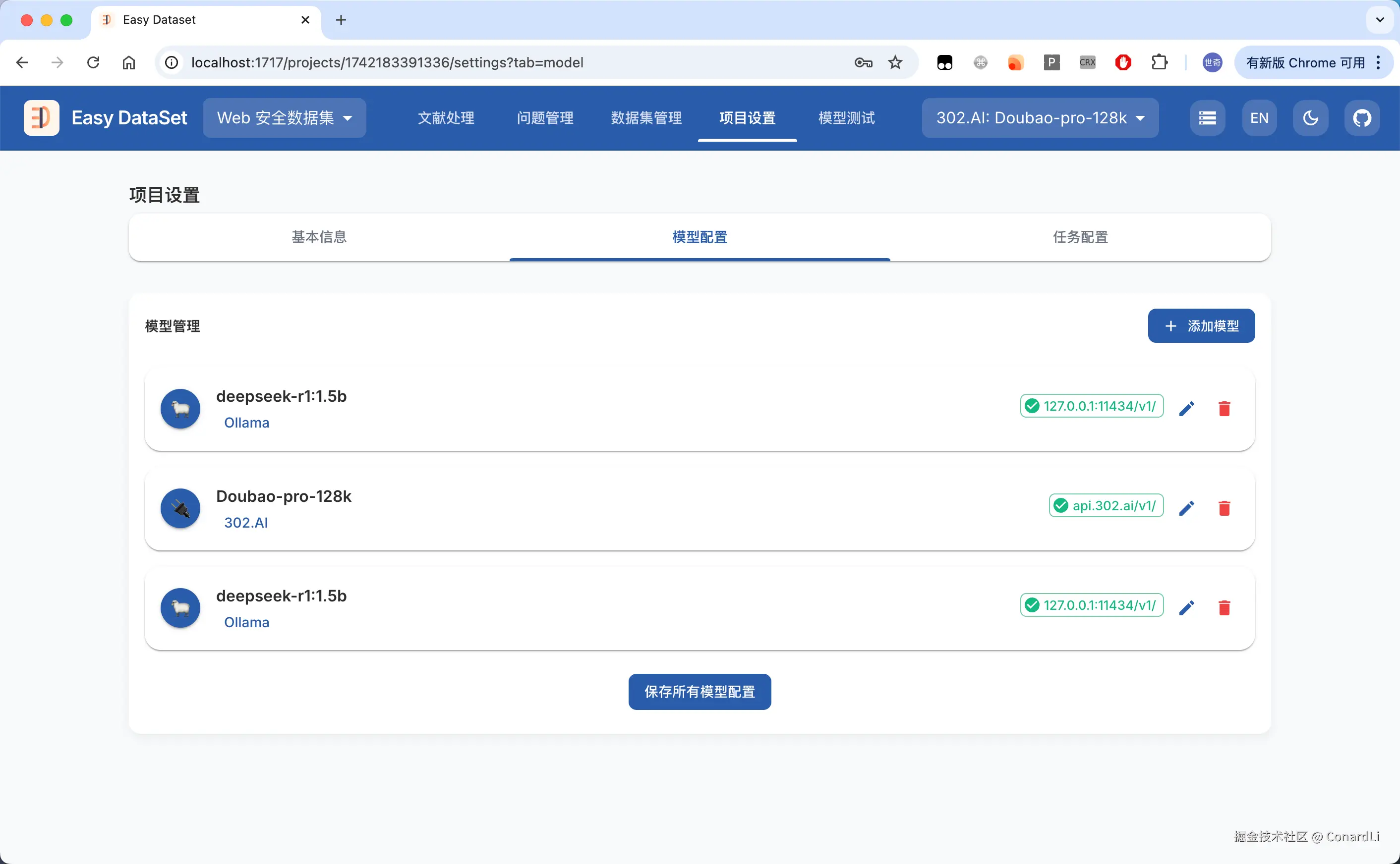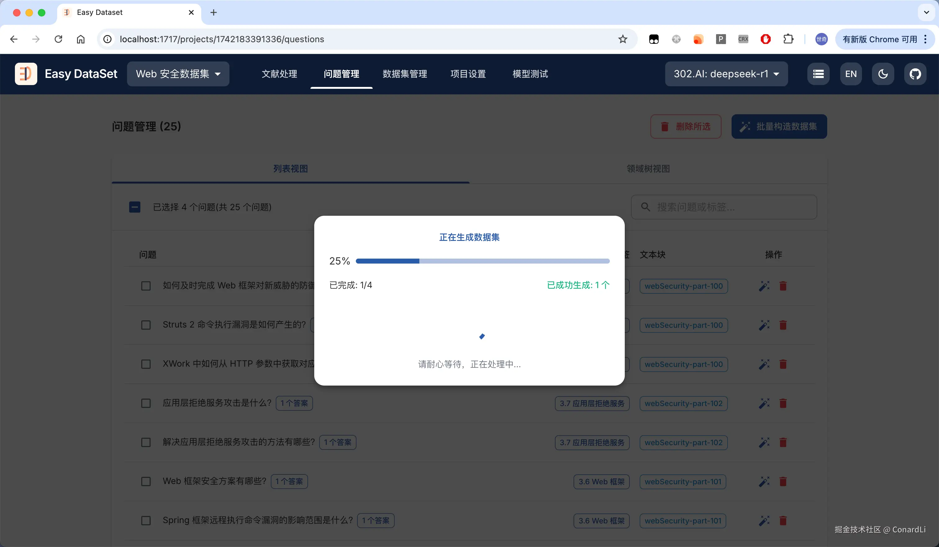 目前市面上确实没有一款工具可以满足这样的需求,因此,借助 AI,我大概花了 3 个晚上的时间构建出了 Easy DataSet(github.com/ConardLi/ea…