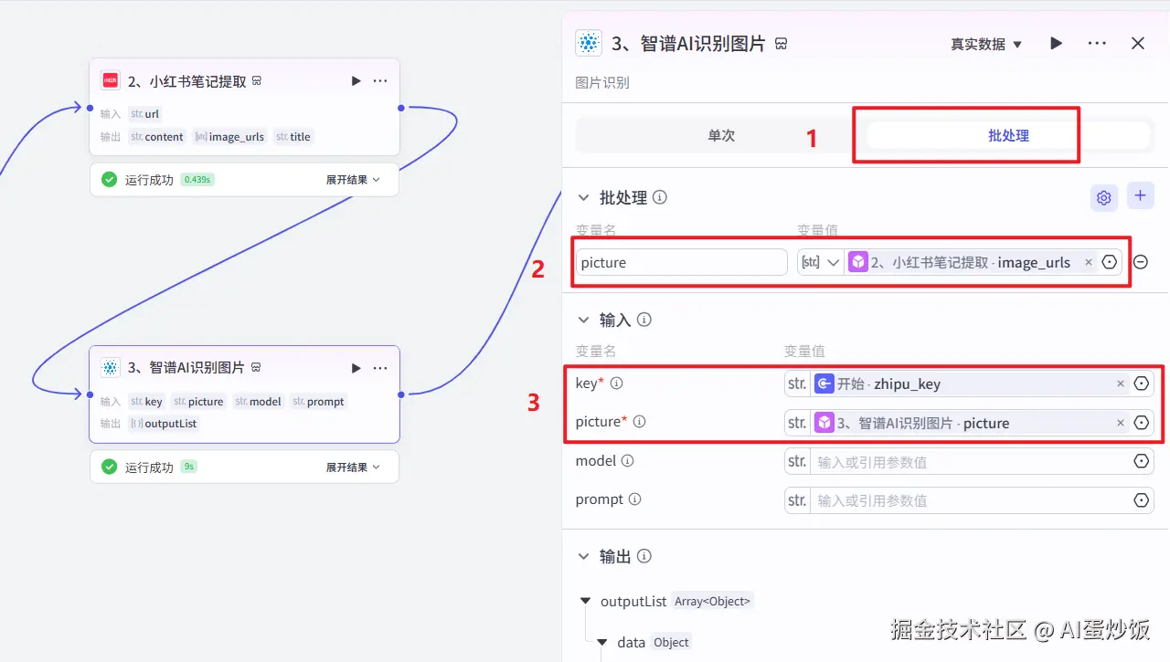 这里需要对小红书所有图片进行 AI 识别,用到了**「批处理」**功能