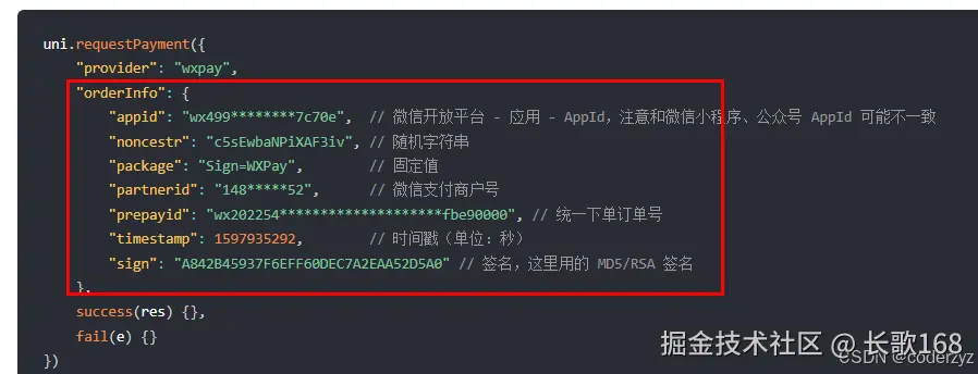2、uniapp微信支付参数传入(uniapp官网截图)