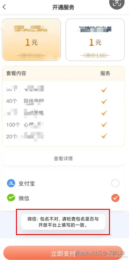 安卓端报错包名和微信开发平台不一致或IOS报错appid商户参数不正确。