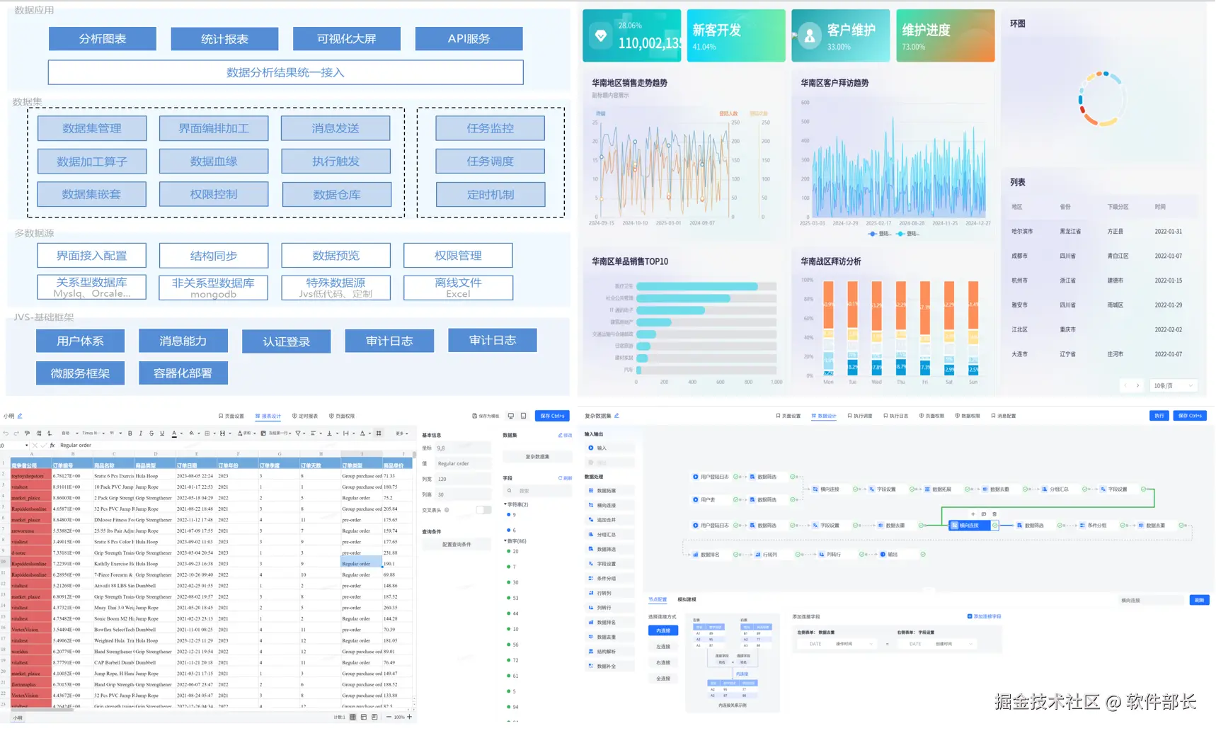 **✅ JVS·智能BI:**自助式数据分析工具,提供数据清洗、数据转换、数据加工等功能。将枯燥数据转化为可视化,帮助企业快速、精准地掌握运营策略,使用门槛低、数据覆盖能力强、多种数据表达模式和建设成本低的一站式数据分析服务。