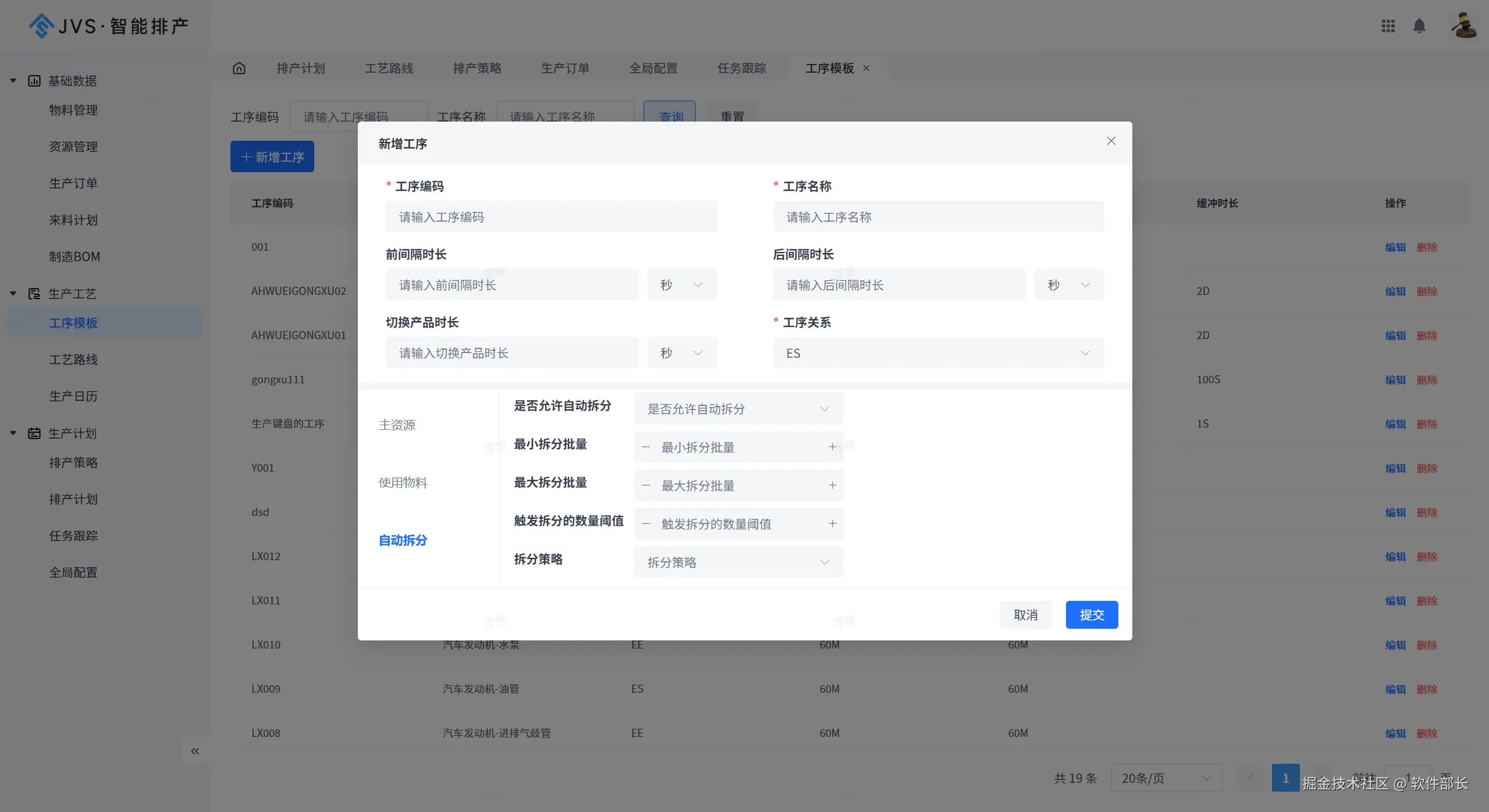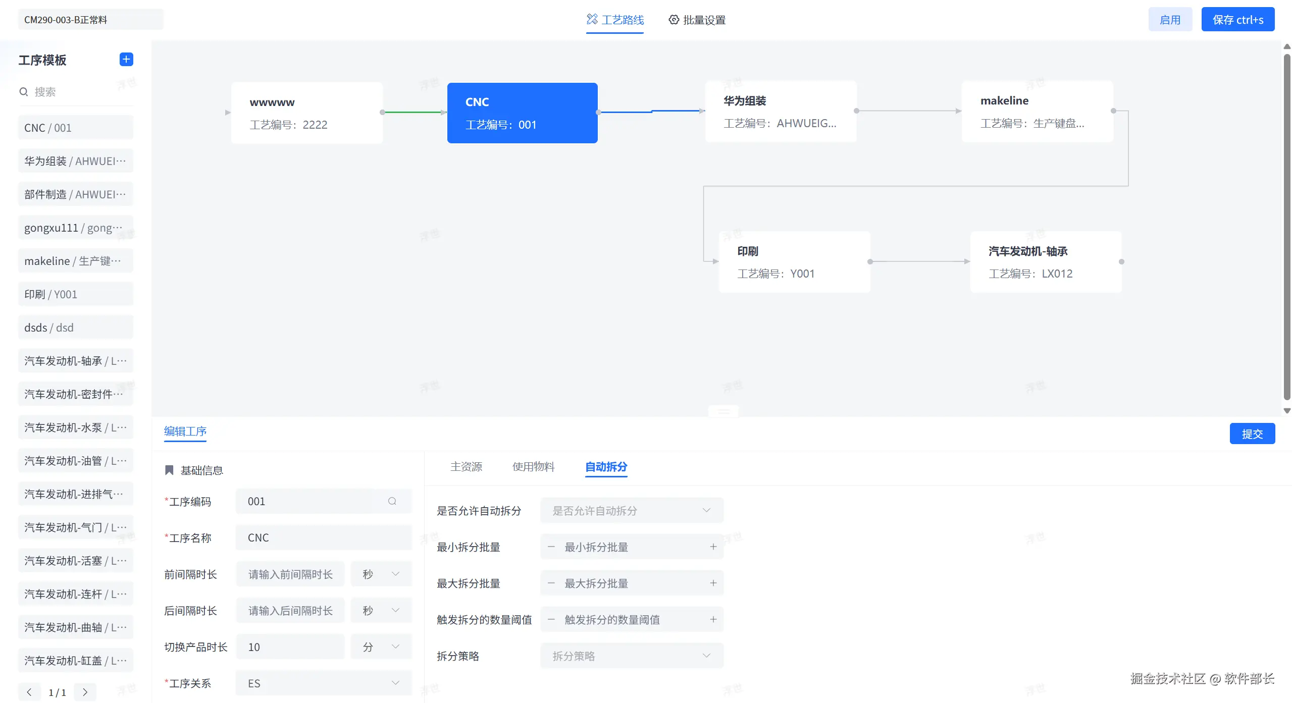 工序的自动拆分设置
